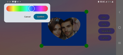 Save your work to the app's album, or Cancel to discard everything and go back to the Home screen.