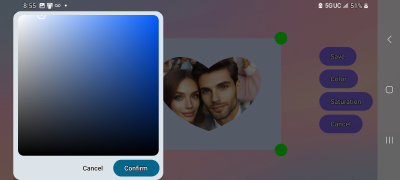 Save your work to the app's album, or Cancel to discard everything and go back to the Home screen.